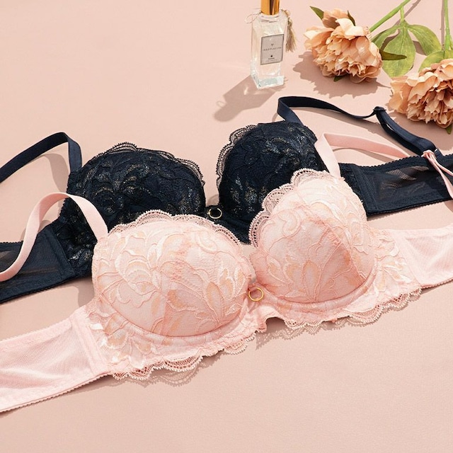 BRADELIS NewYork ブラデリス ジャスミンステップ1ブラ25A2 CA125308 クラシカルなリーフ&フラワーのパターンをモチーフにした ストレッチラッセルレース採用の、ステップ1の補整ブラジャーです。 部分的にゴールドとシルバーの2種類のラメ糸を使用したラグジュアリーなデザインです。 【ブラジャーの特徴】 円郭が広いカップ構造で背中や脇に流れているお肉を集め、 カップに立体感を出し丸みのあるバストを作ります。 フィット感が良く、小さい胸の方には谷間を作り、 大きなバストの方はコンパクトに仕上げます。 お肉が柔らかめの方や脇肉が気になる方 補整ブラ初心者の方にもおすすめです。 肌馴染みが良く透けにくいローズピンク、 ラメ糸の輝きが美しいネイビーの2色展開です。 ※柔軟剤を使用すると下着が柔らかくなるため、型崩れなどにより補整力が低下する恐れがございます。乾燥機なども使わないでください。 サイズ 70B・75B・65C・70C・75C・65D・70D・75D・65E・70E・75E・65F・70F・75F 素材 ナイロン・ポリエステル・ポリウレタン カップ表 レース縦ダーツ仕様。レース表下にトリコットを重ねています。 カップ裏 綿100%天竺を使用。吸汗性が良く優しい肌触りです。 カップ芯 ふわふわカップでバストをやさしく包み込みます。 パッド カップのサイズによってパッドの大きさを変えています。 カップの保形力向上と洗濯後の型崩れ軽減のために縦方向にステッチを追加しています。 ストラップ 程よい伸縮性があり、肌触りと安定感の良いピコ無しのシンプルなストラップを使用。 バック 厚手1枚パワーネット仕様で、体の動きにフィットし安定性のある着用感です。 サイドボーン 脇のお肉をせき止めてすっきりさせるサイドボーン入り。 ホック 3個どめ3段階 ネームタグ 肌触りを考慮し、右側のパッドポケット口の内側にネームタグを設置。 シャーリング なし 生産国 日本製 ラッセルレース ラッセルレース編機で作られたレースのこと。 レースを編みながら柄を作っていくので、薄く平らな仕上がりが特徴。 トリコット 風合いが柔らかくツヤのある伸縮性の少ないポリエステル素材の事。 綿天竺 柔らかな綿素材。綿特有の保温性、吸水性に優れている。 カップの肌側や、マチの肌側に使用。 ピコ ストラップやショーツなどのテープ端に、 山型に小さく施されたフリルのようなデザイン。 シャーリング レースの柄と柄を繋ぐ糸を編みこまずに浮かせて、 カットすることで透け感や柄をすっきりとさせる手法。 ※ご覧頂いている商品の写真につきましては、 できるだけ実物の色に近くなるように努めておりますが、 照明の関係により、実際よりも色味が違って見える場合があります。 また、お使いの環境(モニター、ブラウザ等)の違いにより、 色の見え方が実物と若干異なる場合がございます。 予めご了承ください。 ショッピングバッグ (有料となります) リップル リボン型 ショッパー 袋 SS サイズ https://ripplu.thebase.in/items/64764987 リップル リボン型 ショッパー 袋 S サイズ https://ripplu.thebase.in/items/64765010 リップル リボン型 ショッパー 袋 M サイズ https://ripplu.thebase.in/items/64765031 ※衛生上、返品交換は不可となります。 万が一の不良品の場合を除き原則として返品はお断りしております。 又、不備・誤配送以外の返品、交換はご遠慮頂いております。 ※商品発送まで1週間~10日ほどお時間いただいております。 ※店舗にて同時販売のため、万が一品切れの際はご容赦ください。