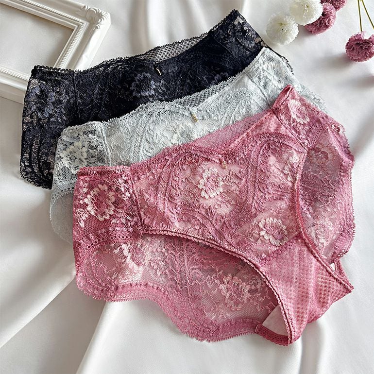 流れるようなスカラ柄と美しいカーブを活かした総レースデザインのパンティです。