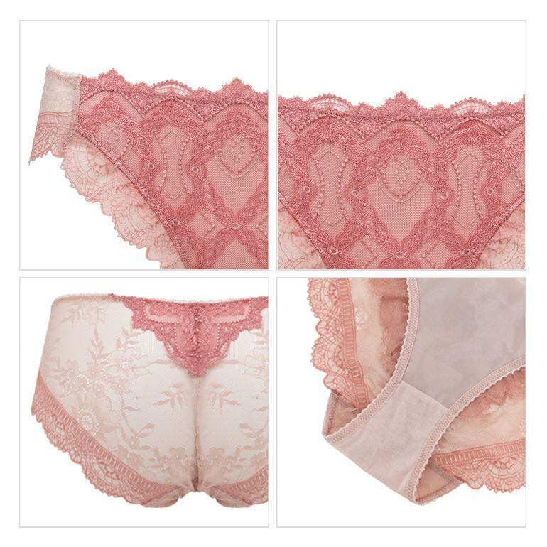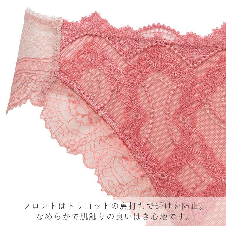 裏打ちは透け防止のため、ブラと同色のトリコット*を使用。なめらかで肌触りが良く、快適なはき心地です。