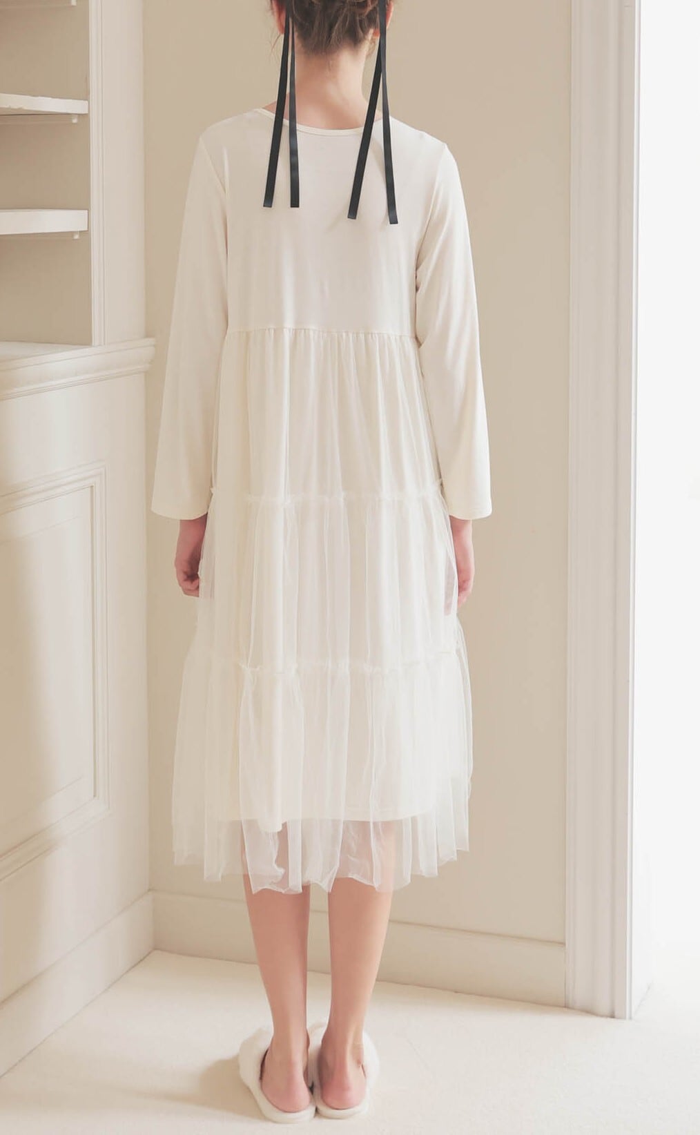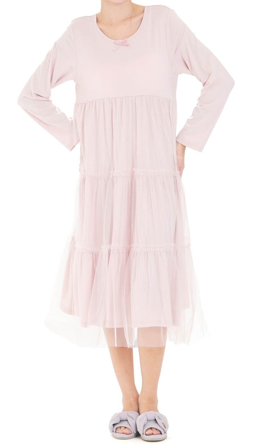 ティアード切り替えのチュールをふんだんにあしらったバレリーナのようなナイトドレス。