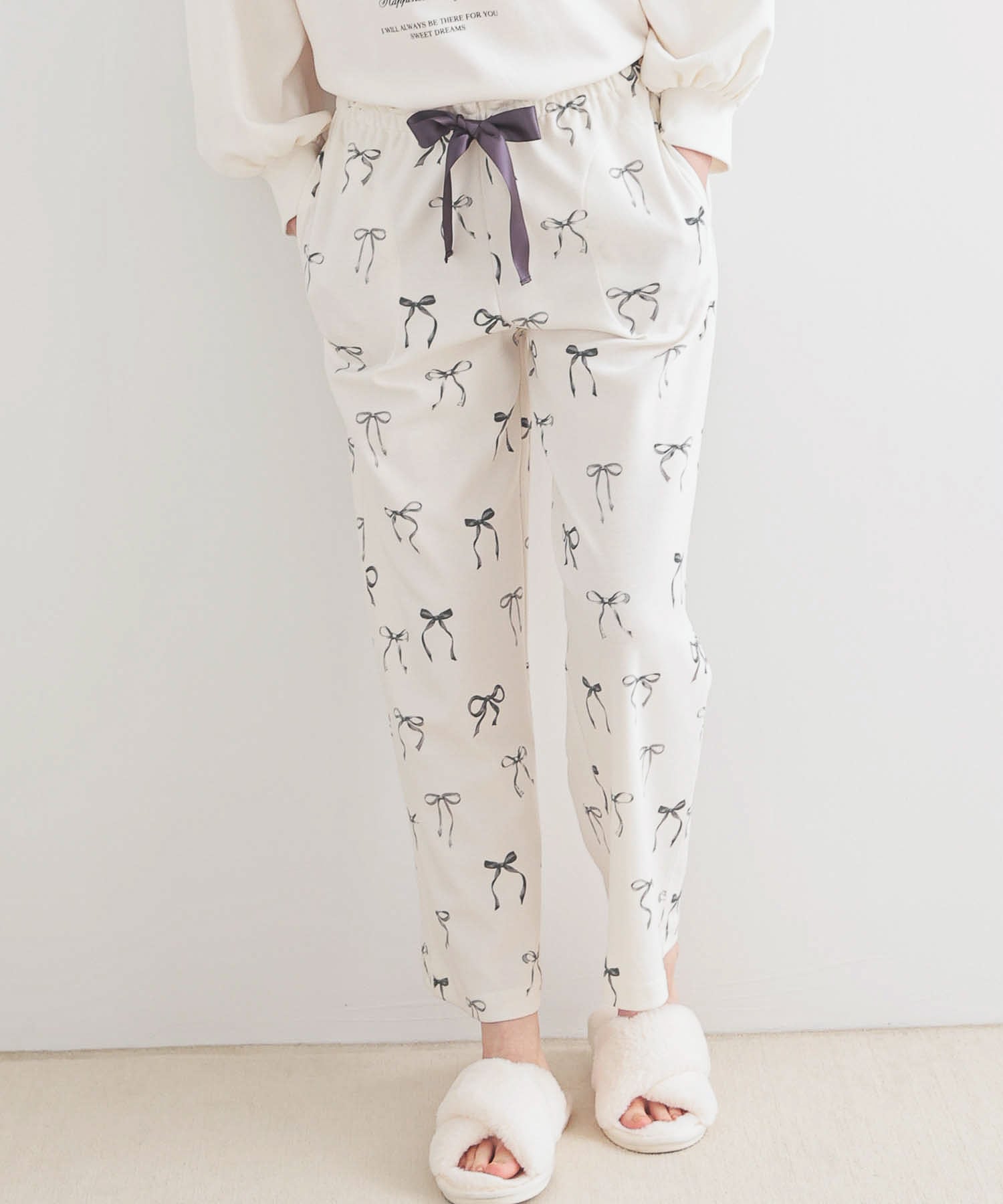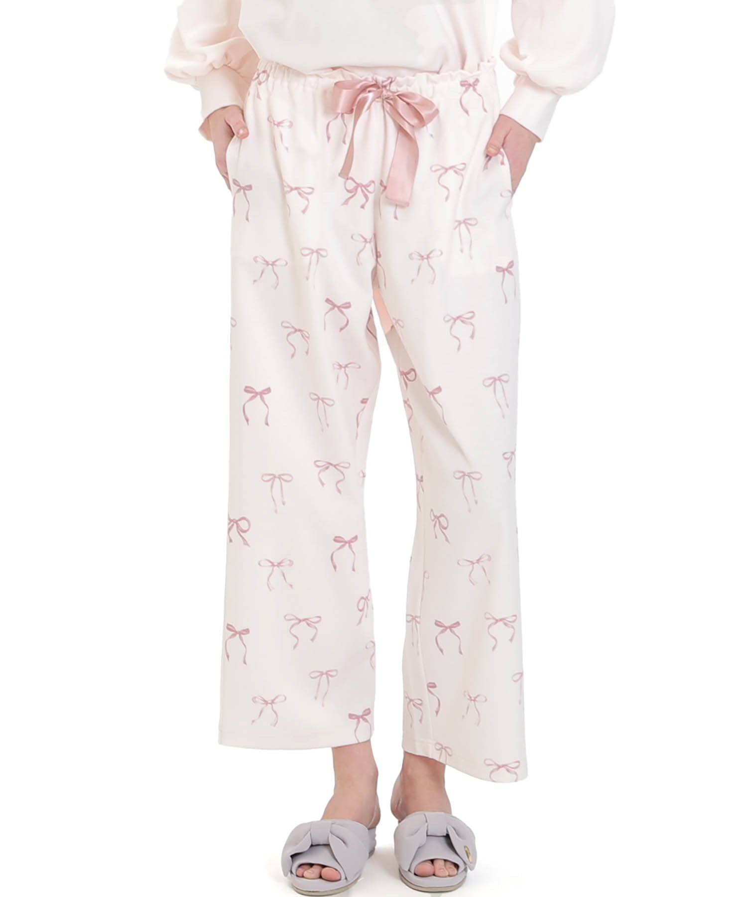 パンツは水彩タッチで描き上げたリボン柄。