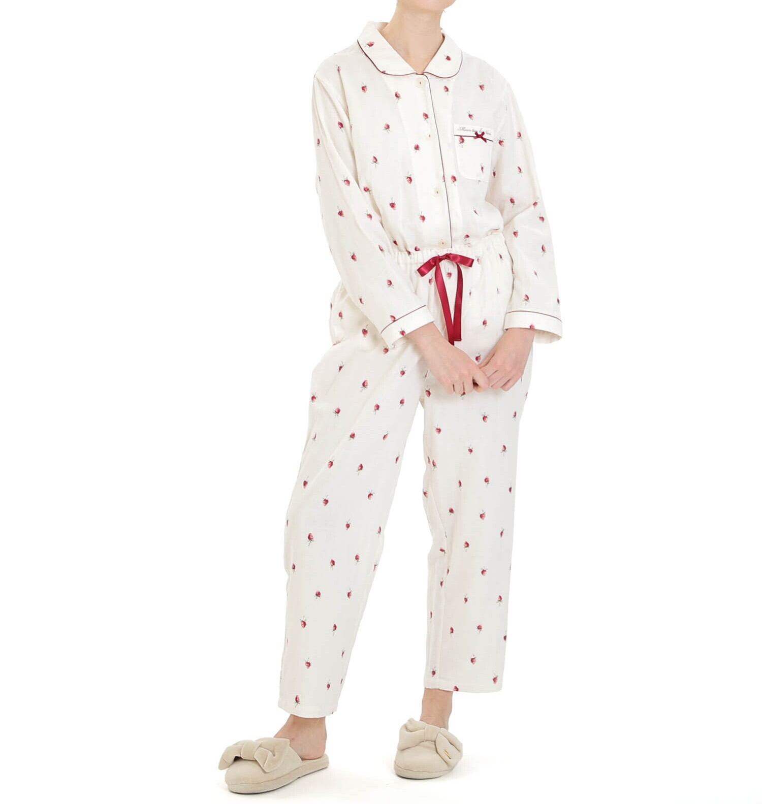 Narue ナルエー コットンダブルガーゼいちごシャツパジャマ 25-51431