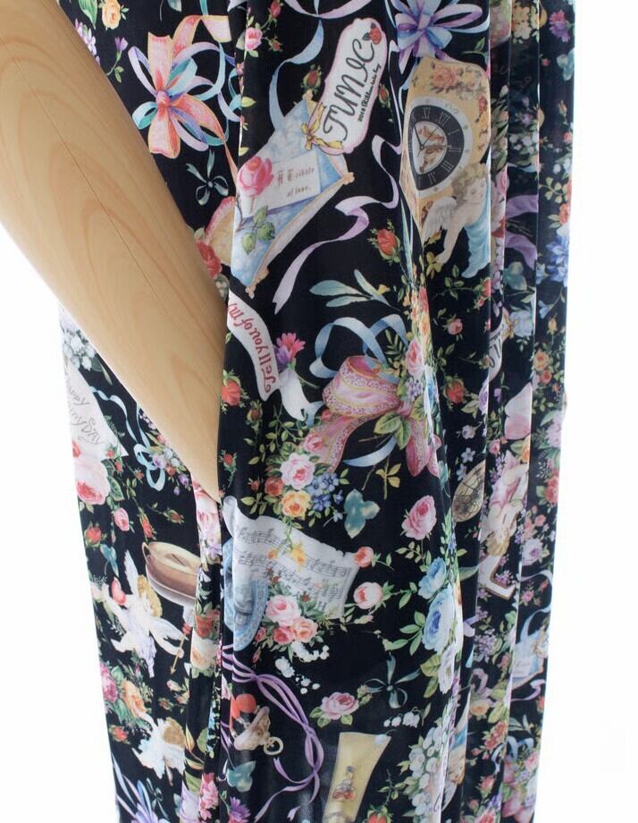 天使や花束、リボンなど繊細なモチーフが散りばめられ、