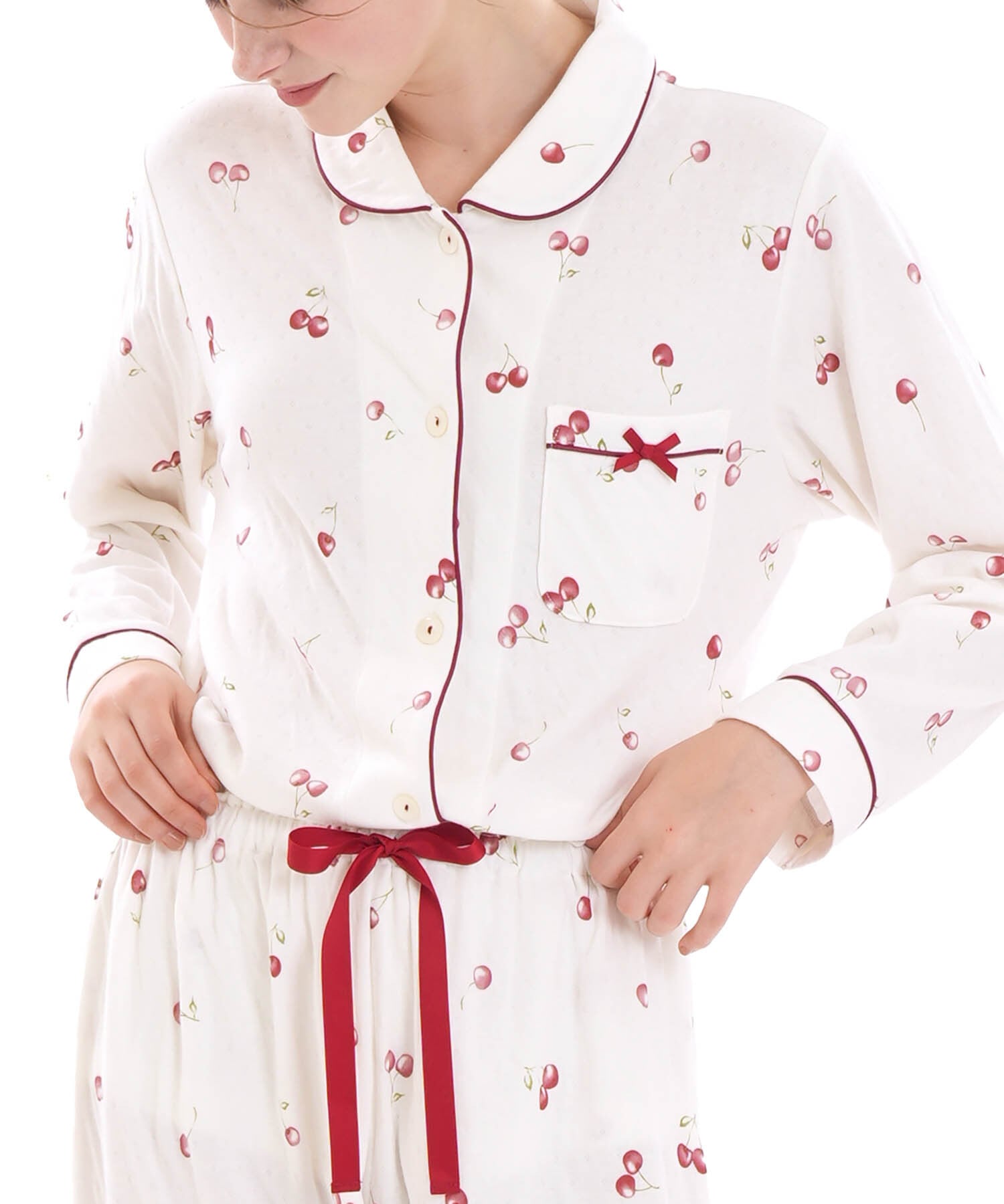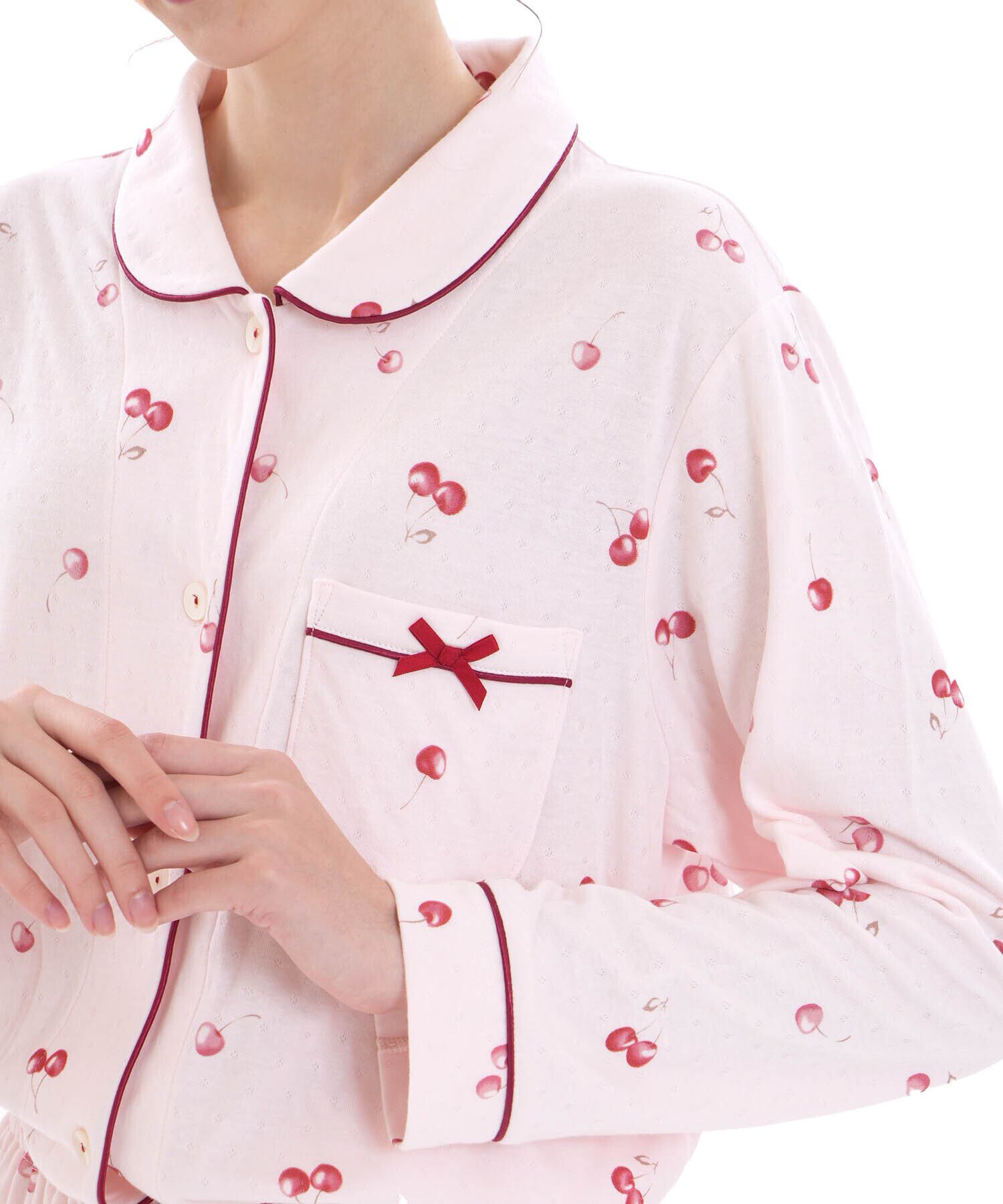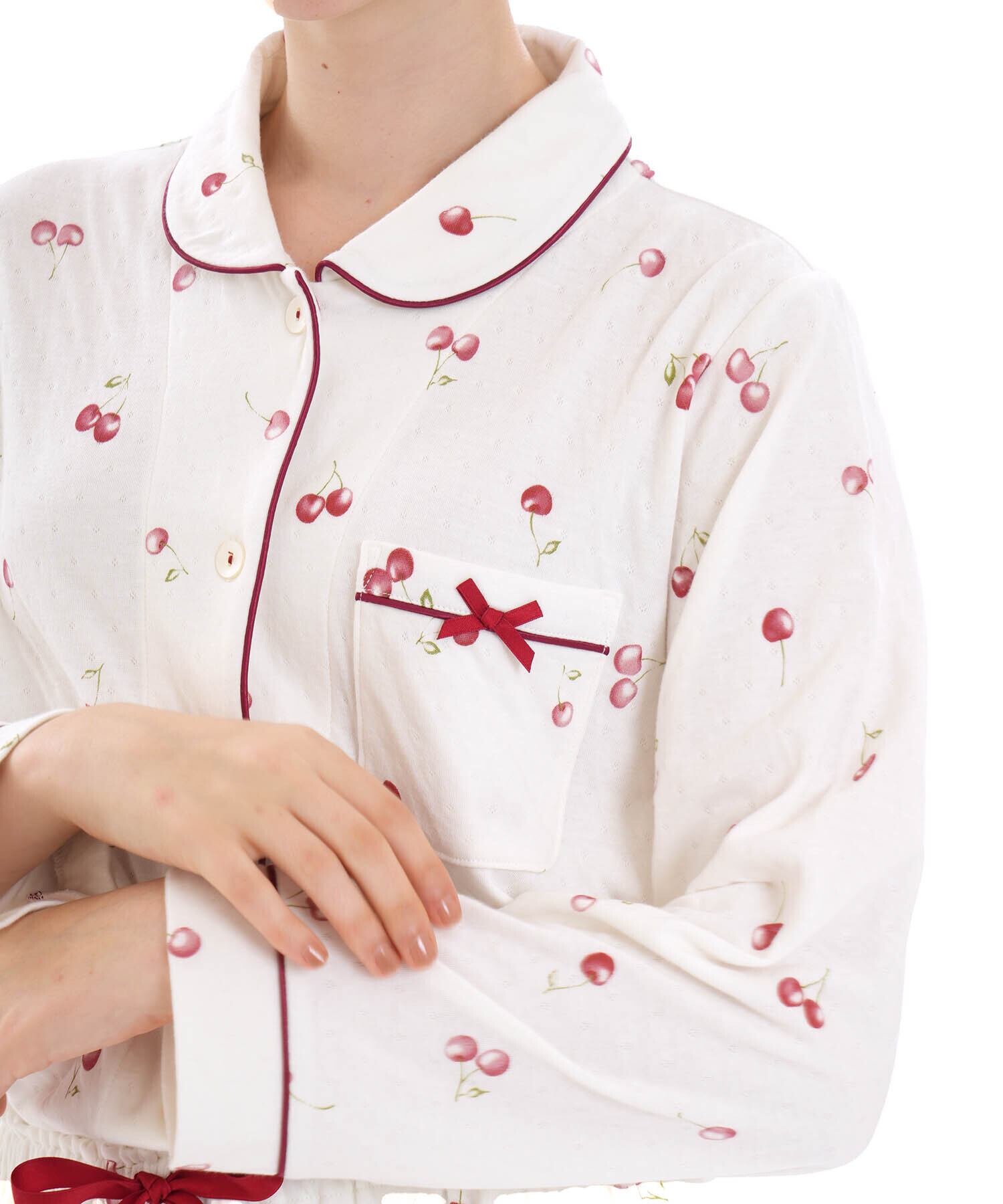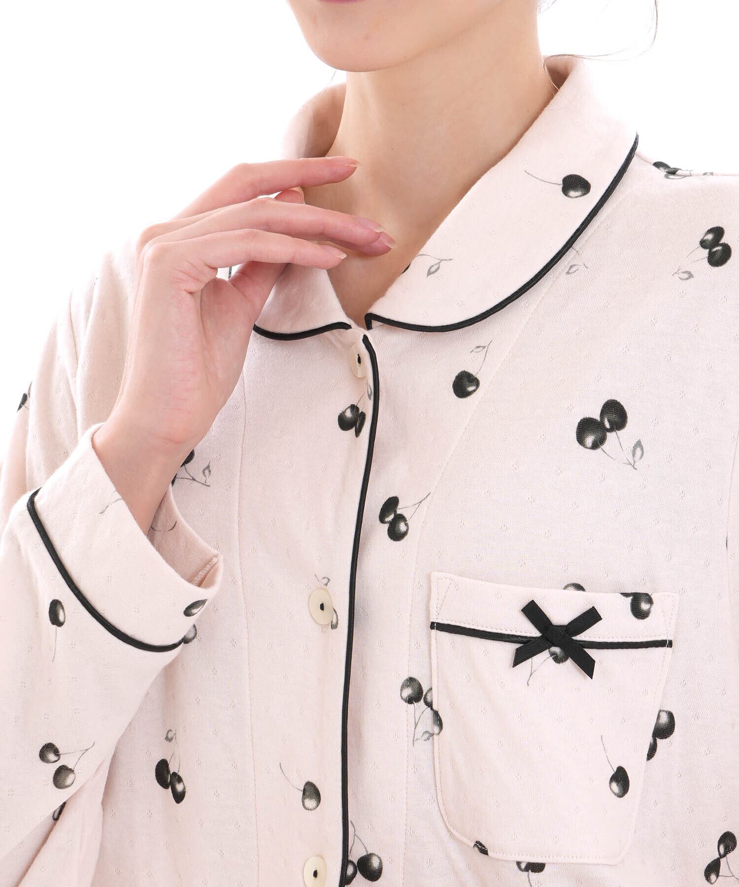 Narue ナルエー コットン接結チェリーシャツパジャマ 25-71402