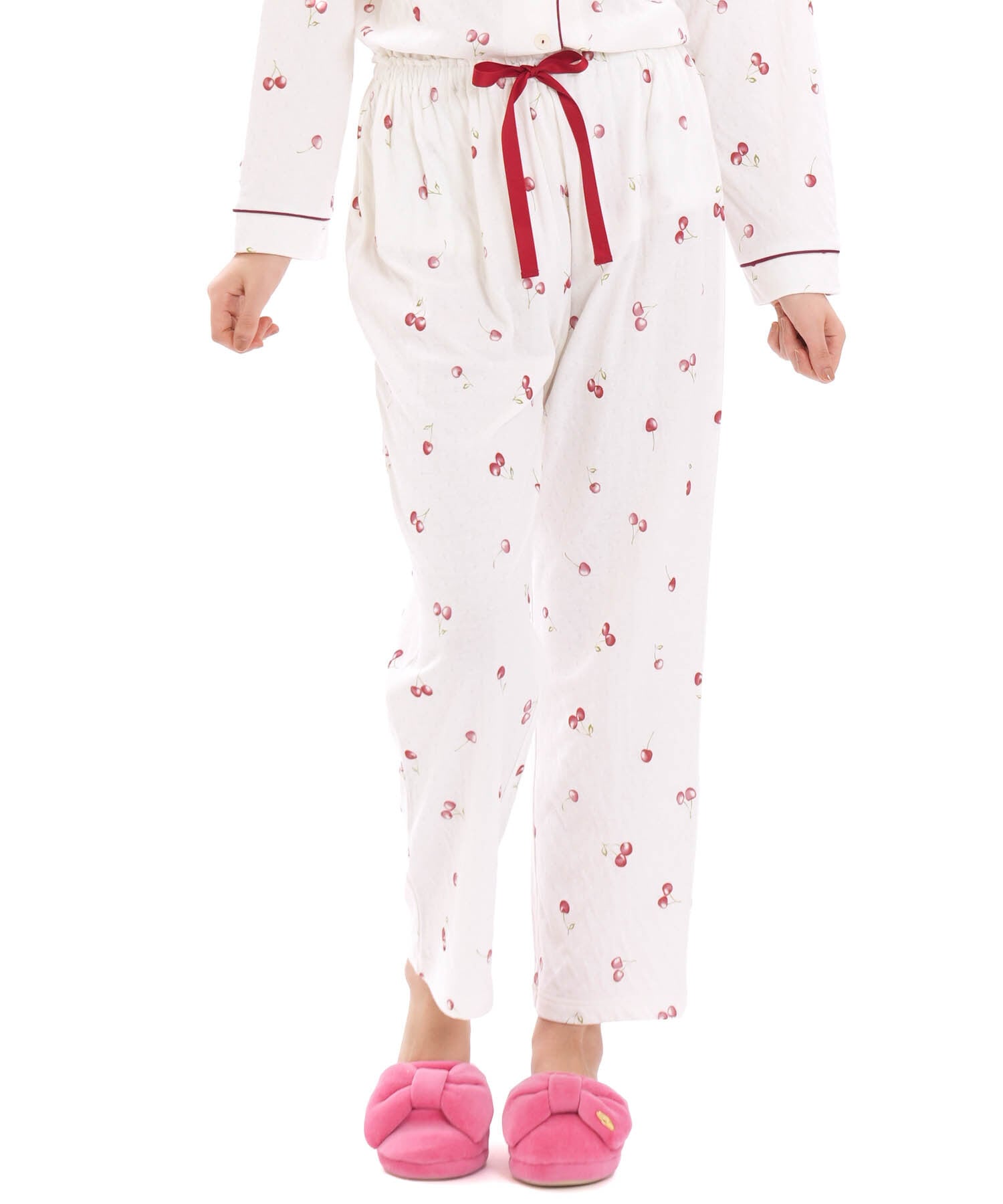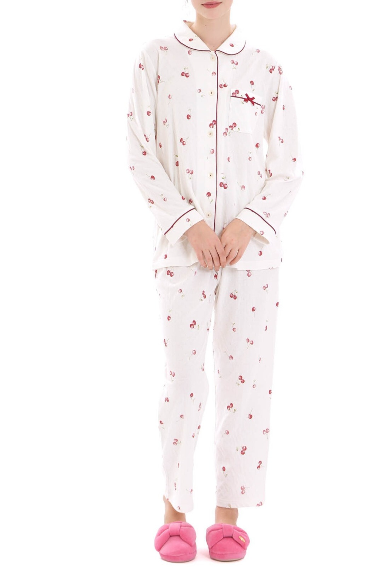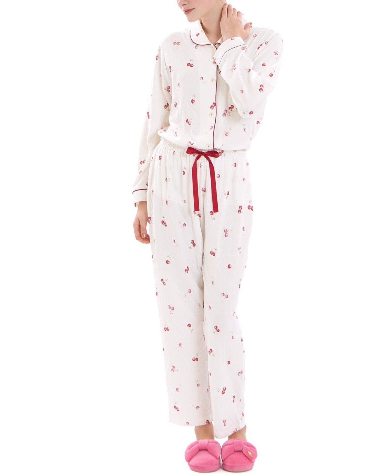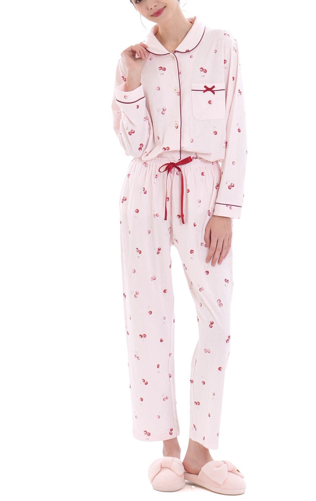 Narue ナルエー コットン接結チェリーシャツパジャマ 25-71402