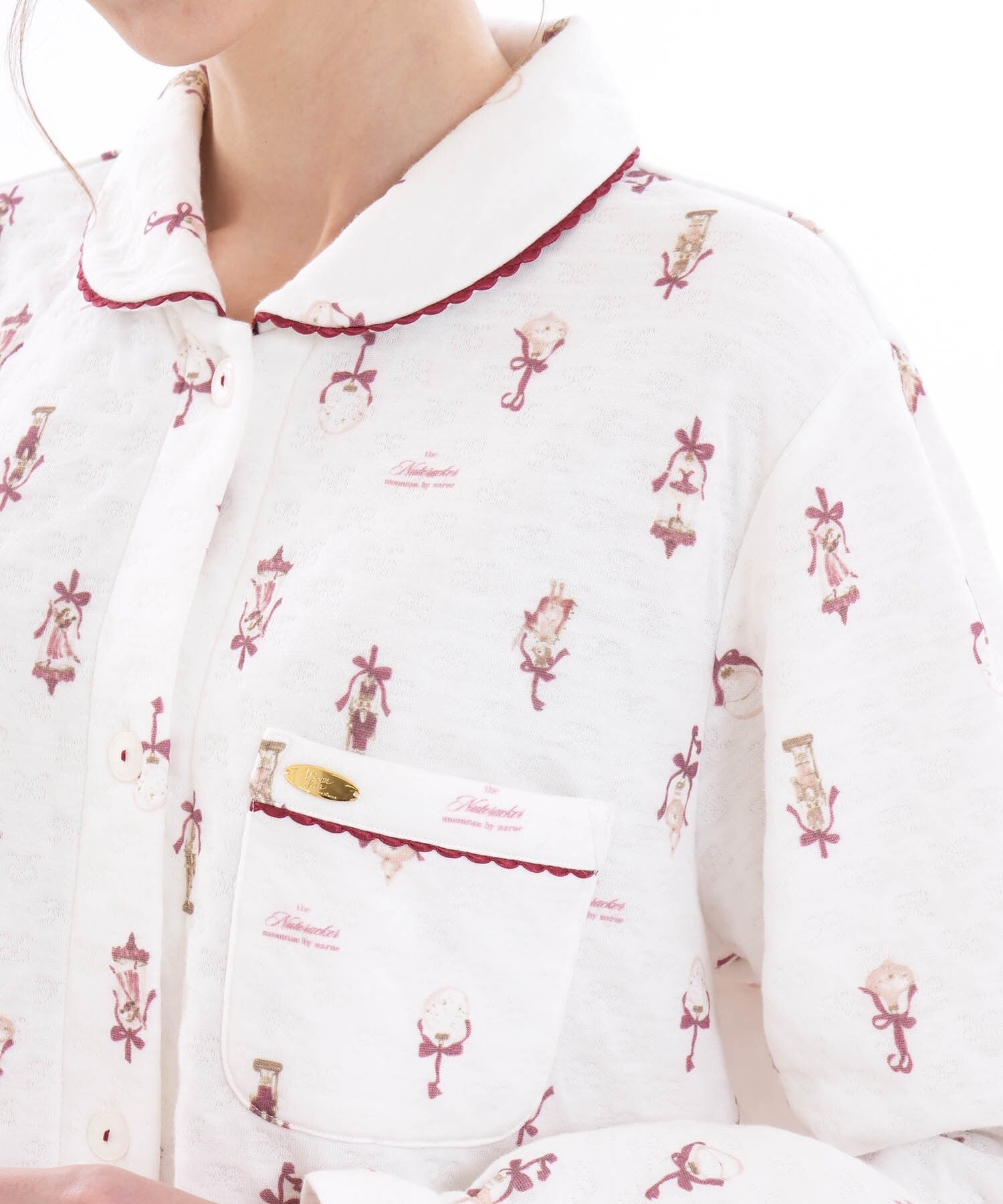 Narue ナルエー 裏綿接結(綿入り)くるみ割り人形シャツパジャマ 25-71413