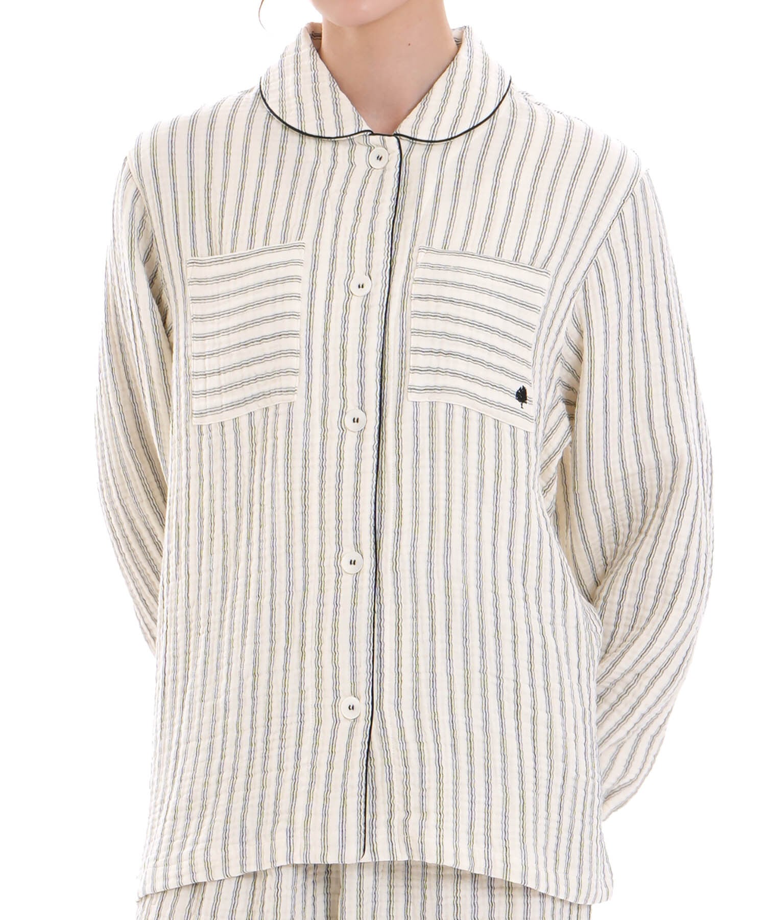 Narue ナルエー シュークリームガーゼ ストライプシャツパジャマ 25-72404
