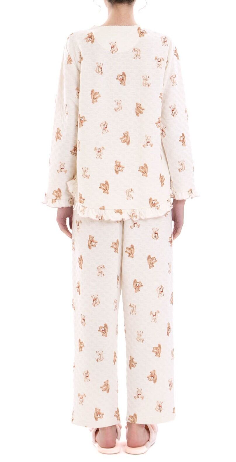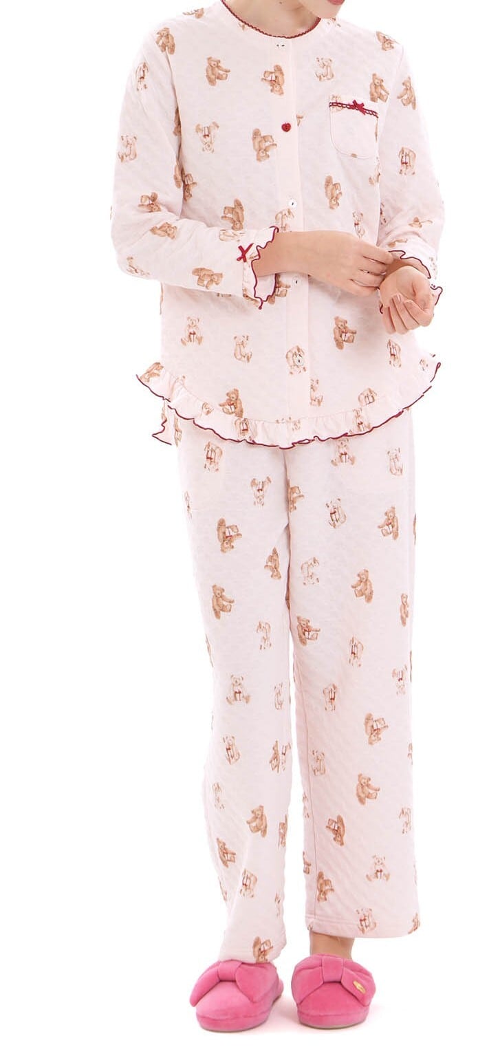 Narue ナルエー 裏綿接結(綿入り)テディーベアフリルパジャマ 25-71406