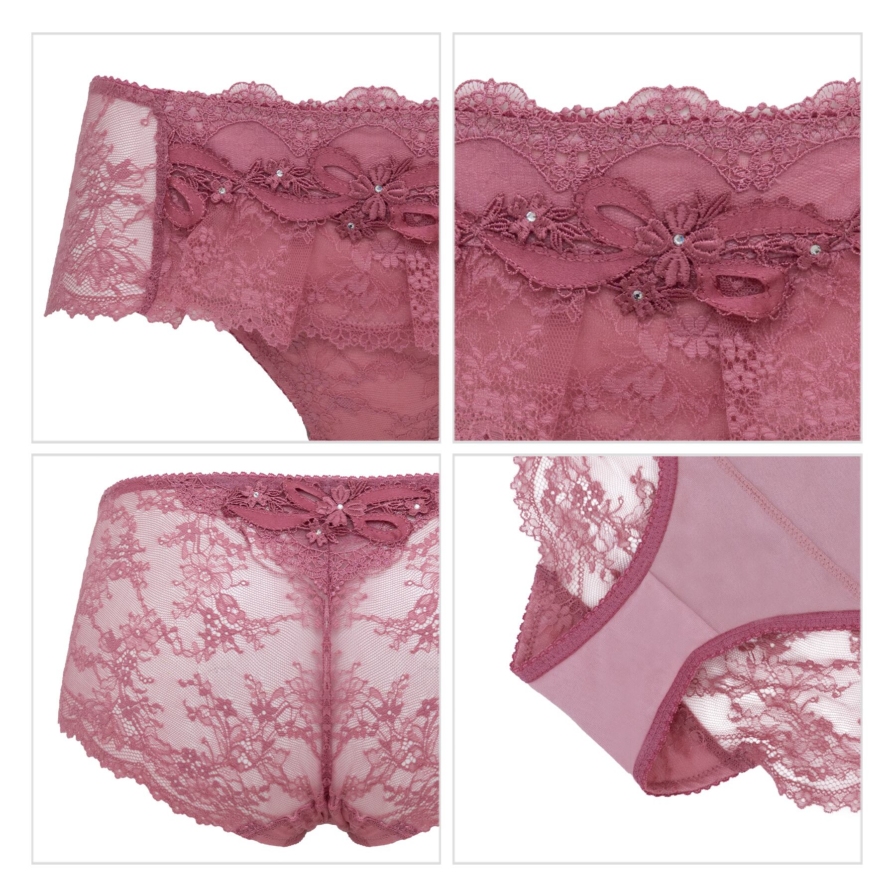 3種類のレースを組み合わせた総レースの華やかなデザインのパンティです。