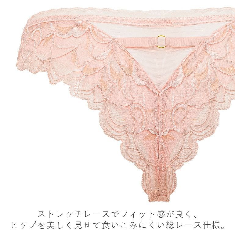 バックはフィット感の良いストレッチレースを使用。食いこみにくくヒップを美しく見せる総レース仕様です。