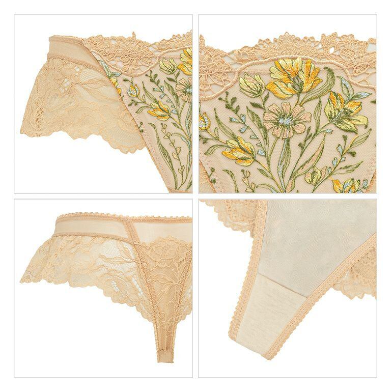 フロントの裏打ちは透け防止のため、ブラと同色のトリコットを使用しています。