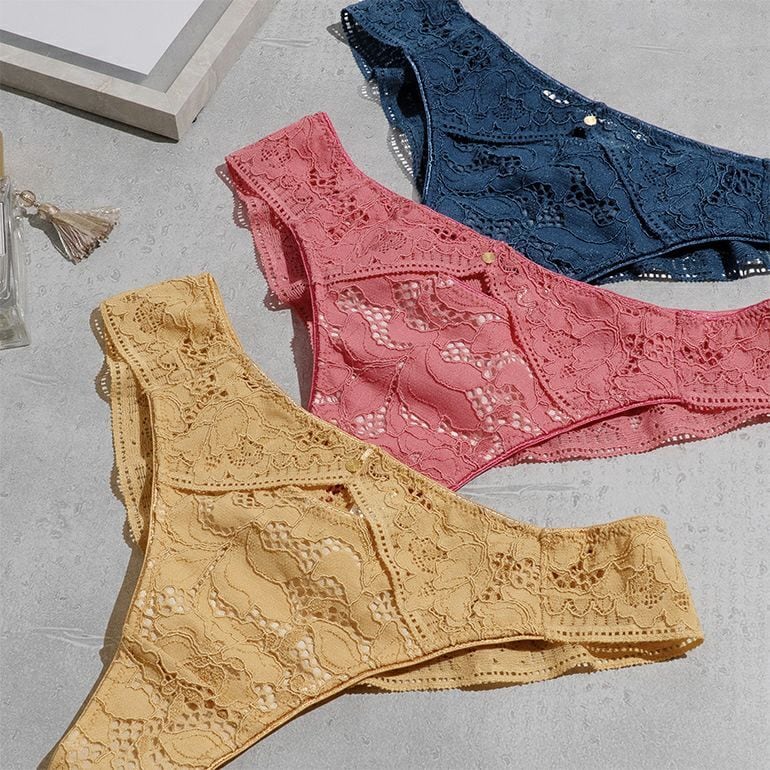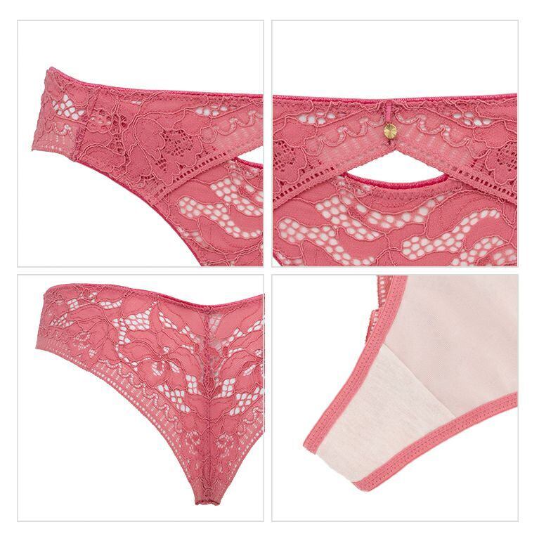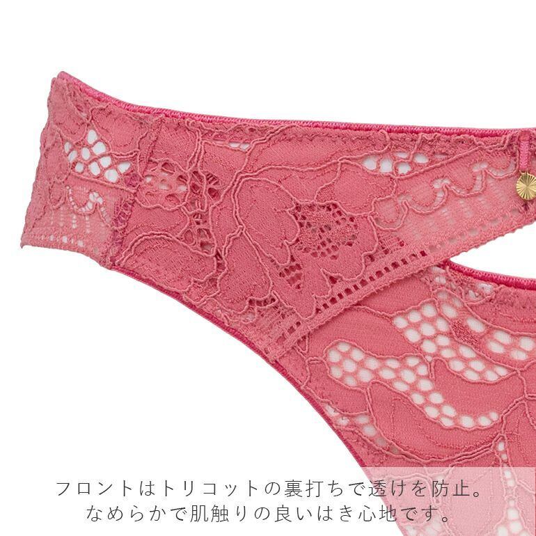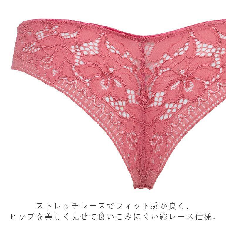 ヒップを美しく見せ、食い込みにくい総レース仕様です。