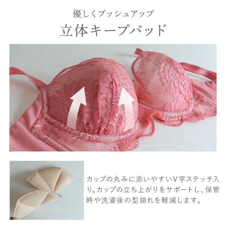 小さいバストの方には程よい谷間を作り、大きなバストの方にはすっきりとコンパクトラインに仕上げます。自然なシルエットがお好みの方や補整ブラ初心者の方にもおすすめです。