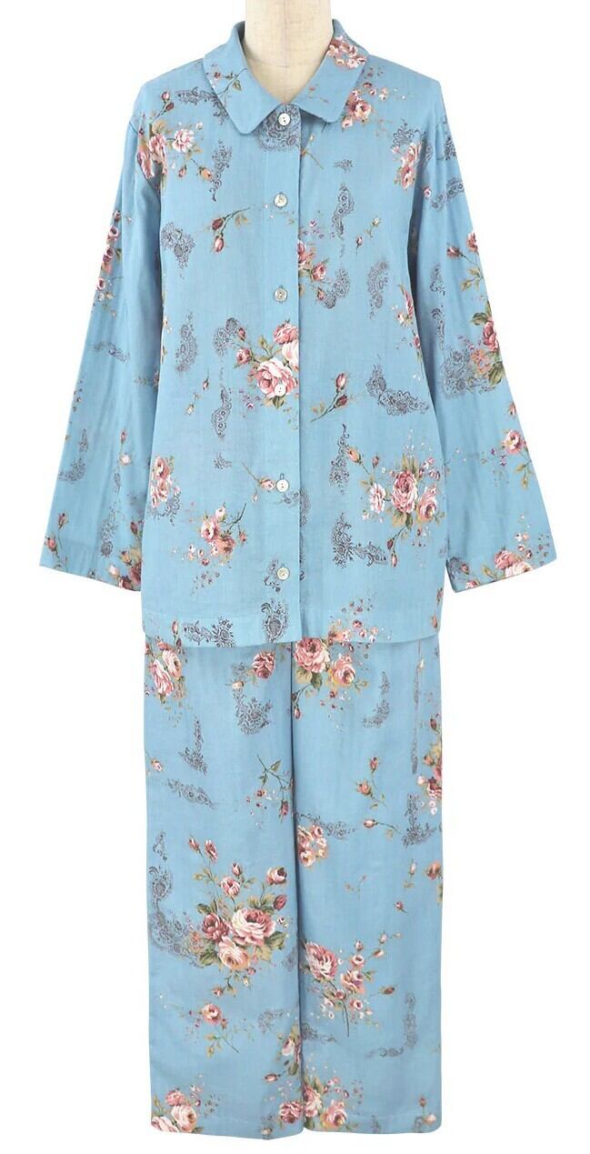 IKUKO イクコ ダブルガーゼ花柄 襟付き長袖パジャマ BN250PQ2