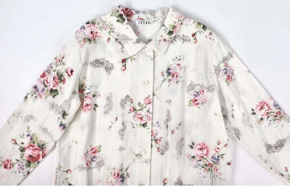 ● IKUKO イクコ ダブルガーゼ花柄 襟付き長袖パジャマ BN250PQ2 日本製 made in Japan