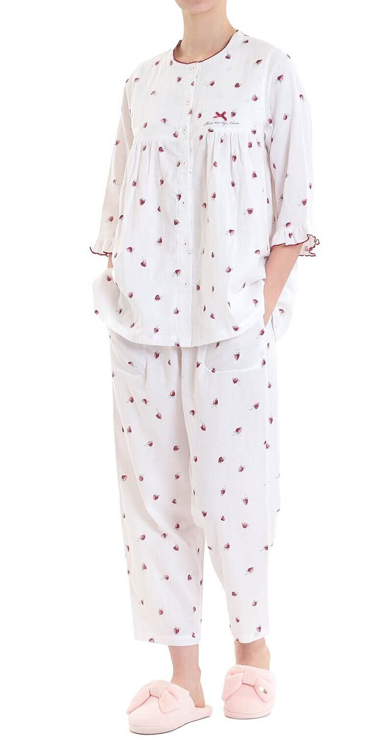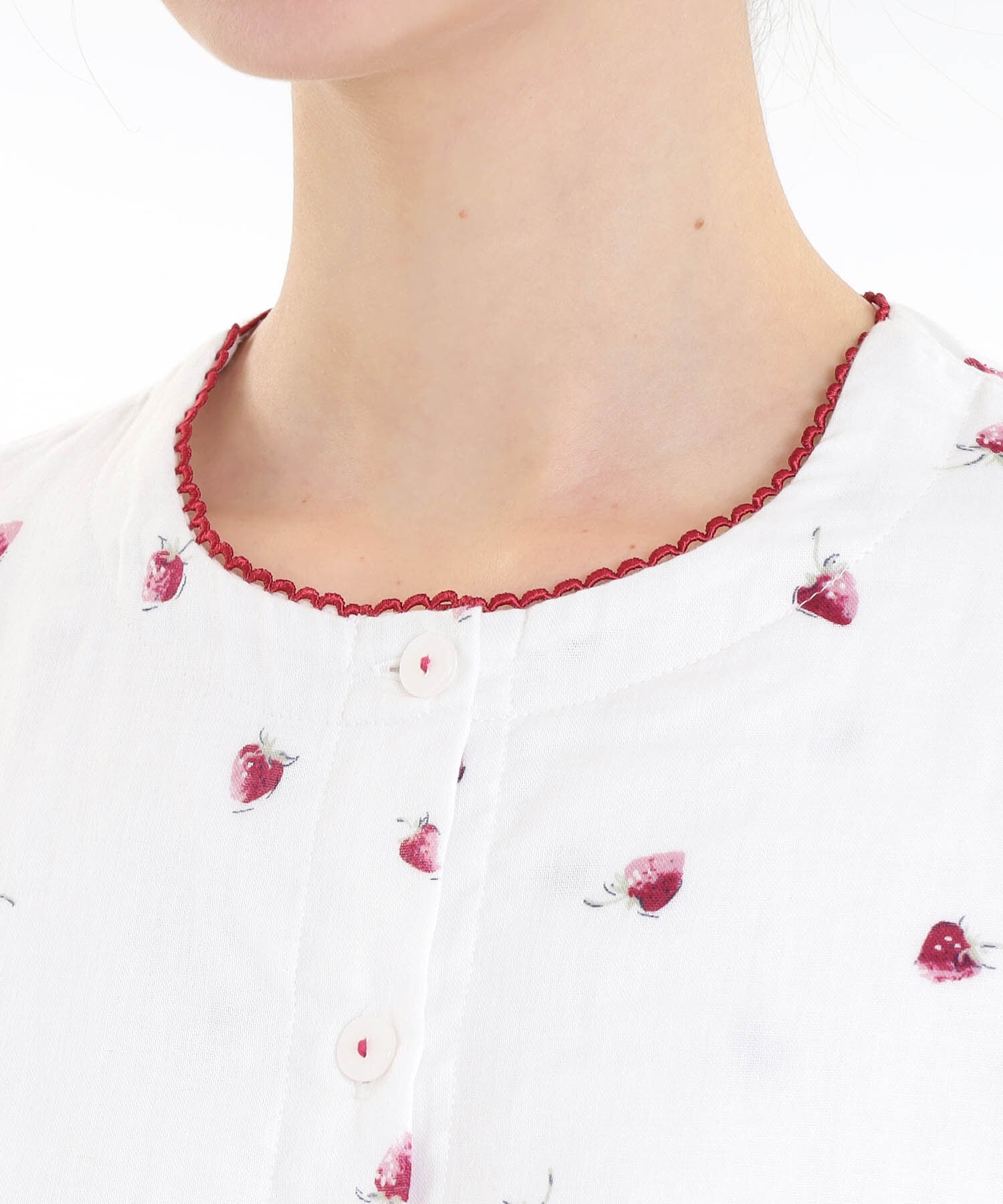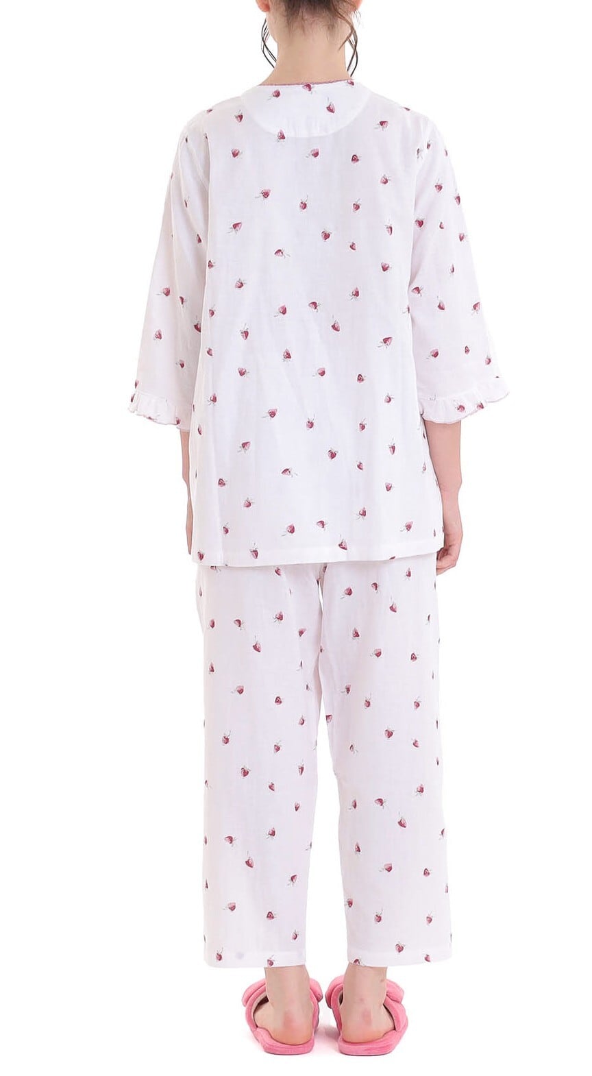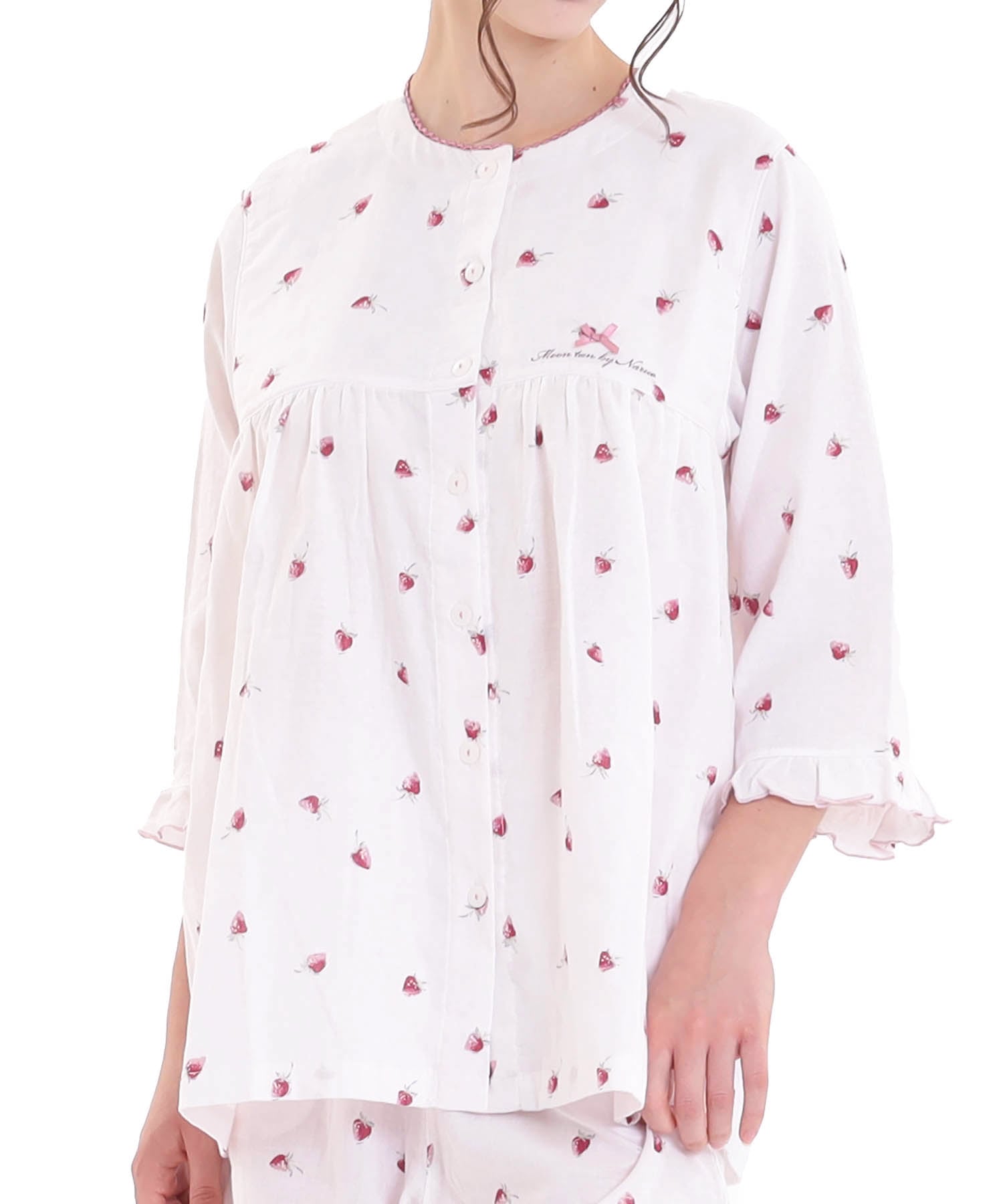 ● Narue コットンダブルガーゼいちご7分袖パジャマ 26-11422