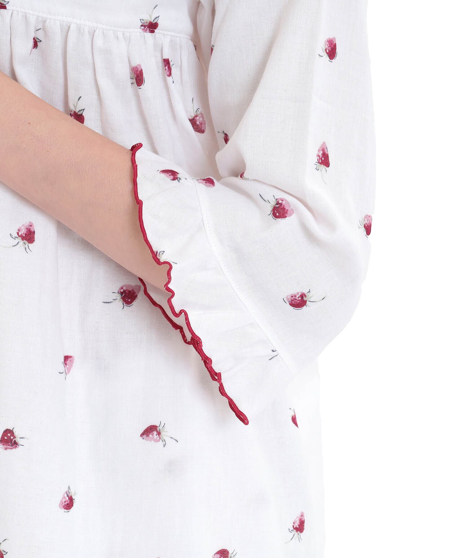 Narue コットンダブルガーゼいちご7分袖パジャマ 26-11422