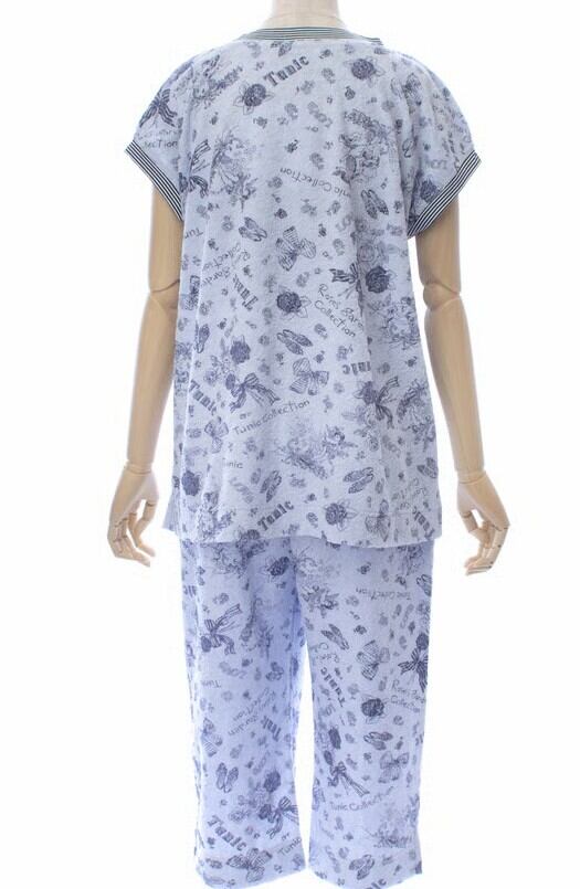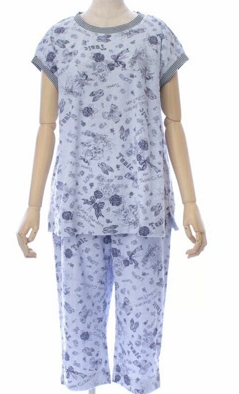 肩先をやさしく覆う、フレンチスリーブのトップスがセットのパジャマです。