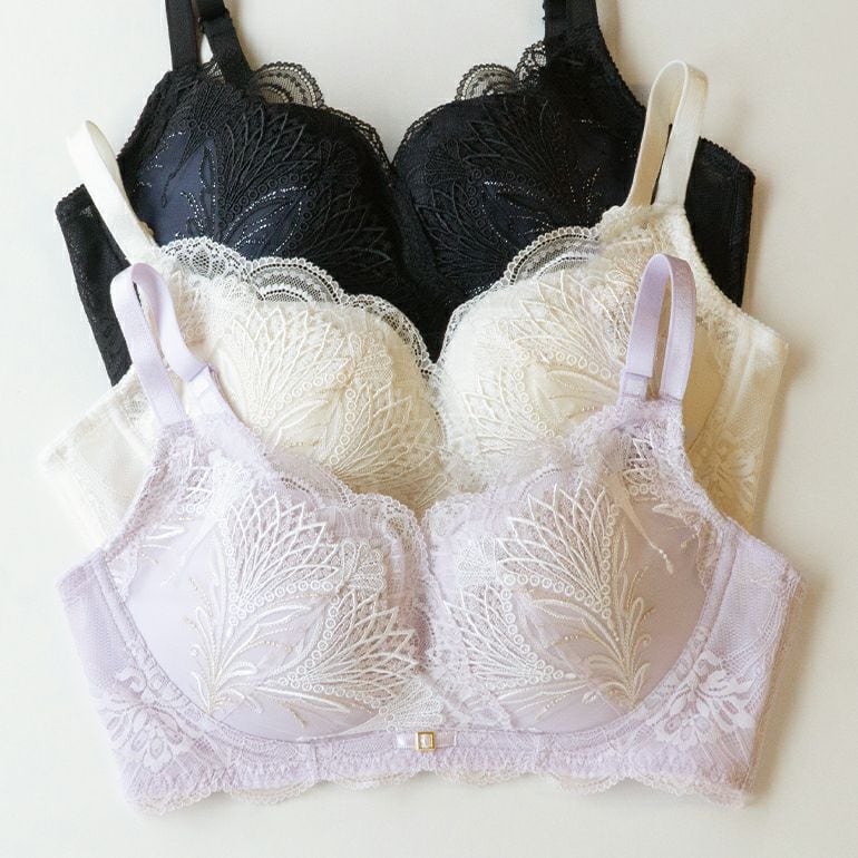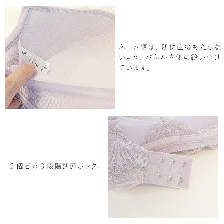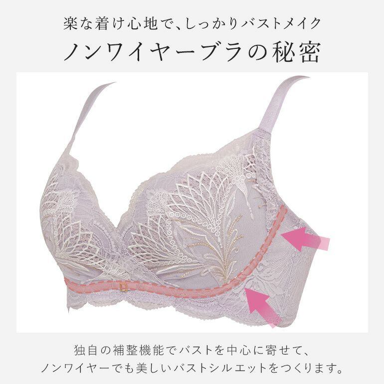 エンブロイダリーレースを使用した、補整ノンワイヤーブラジャーです。
