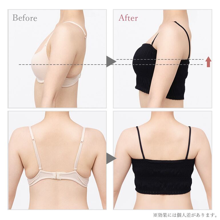 接着による厚みと弾力で、バストがサイドへ流れにくい立体的なバストメイクを