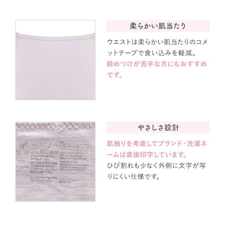 また、クロッチ部分にも身生地と同じナイロン綿ベア天竺を使用しています。