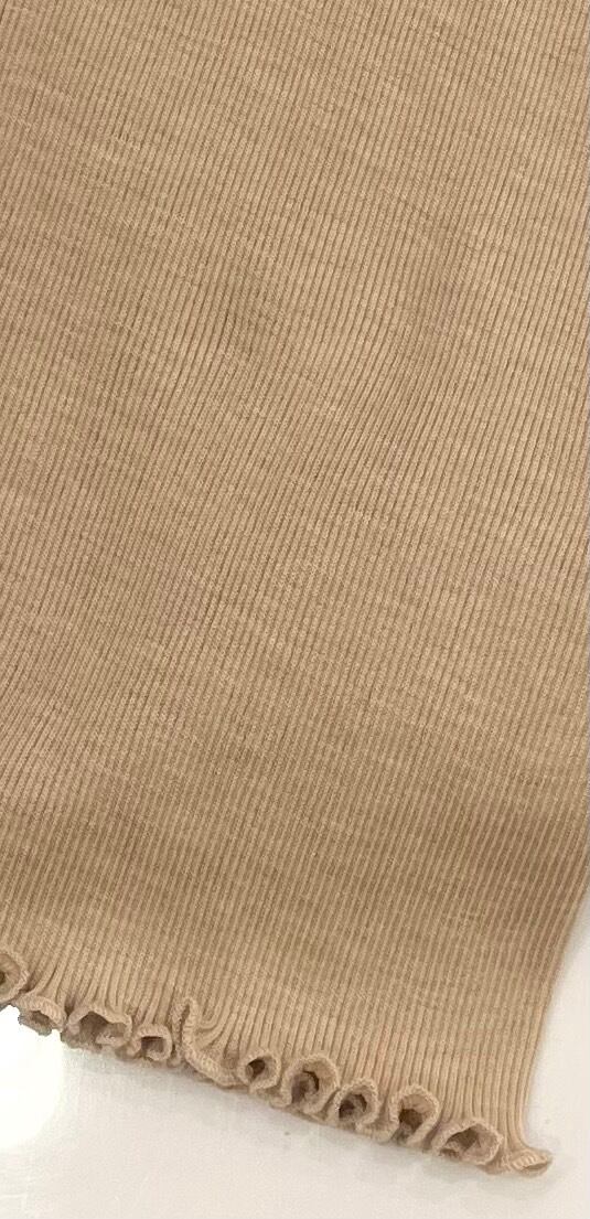 リブ素材は伸縮性が良く、体に優しく沿ってもたつきもなく